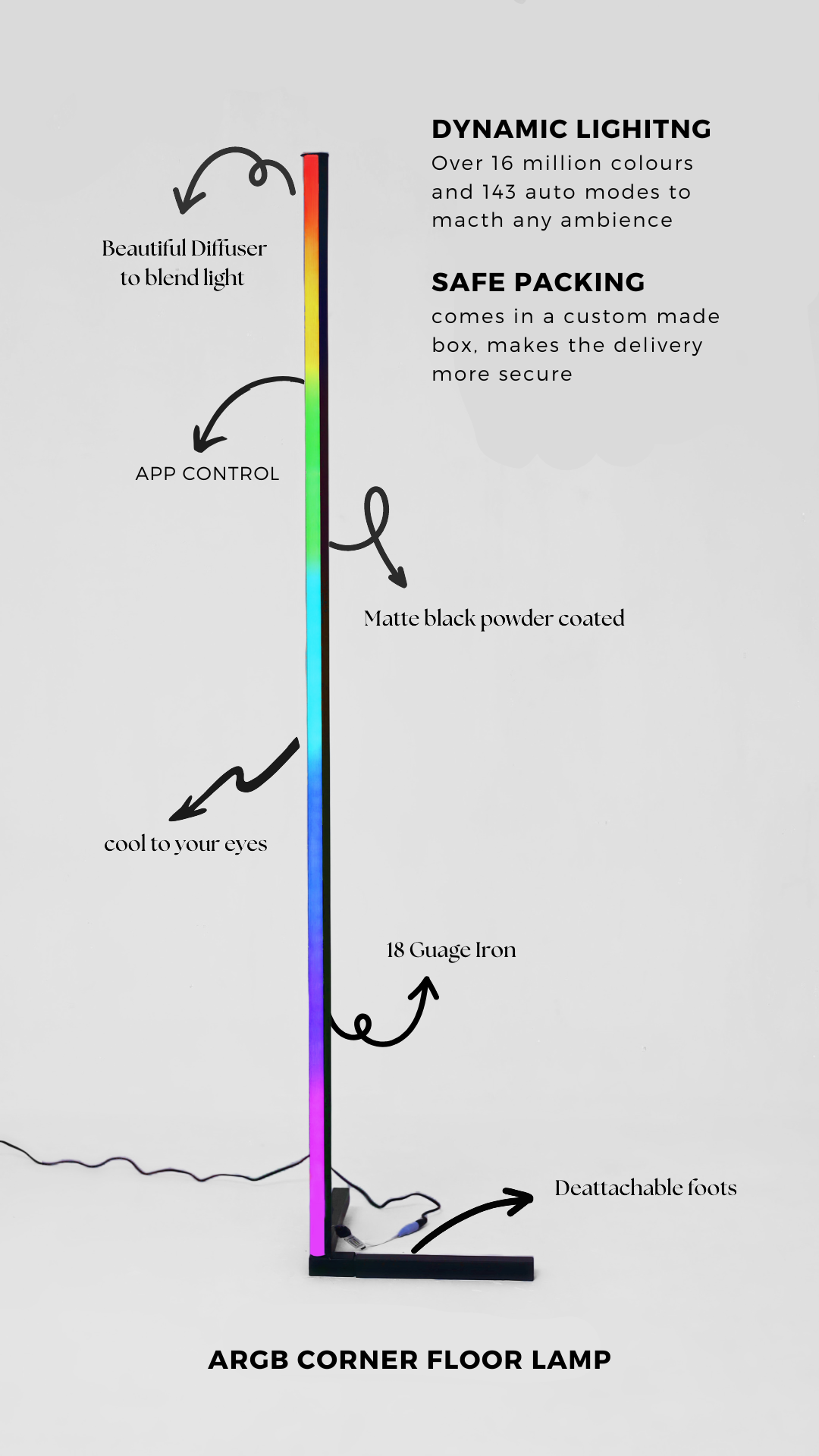 Transform your space with the sleek and stylish ARGB Corner Floor Lamp. Perfect for creating a cozy ambiance or a vibrant atmosphere, this lamp offers smart features for effortless customization.