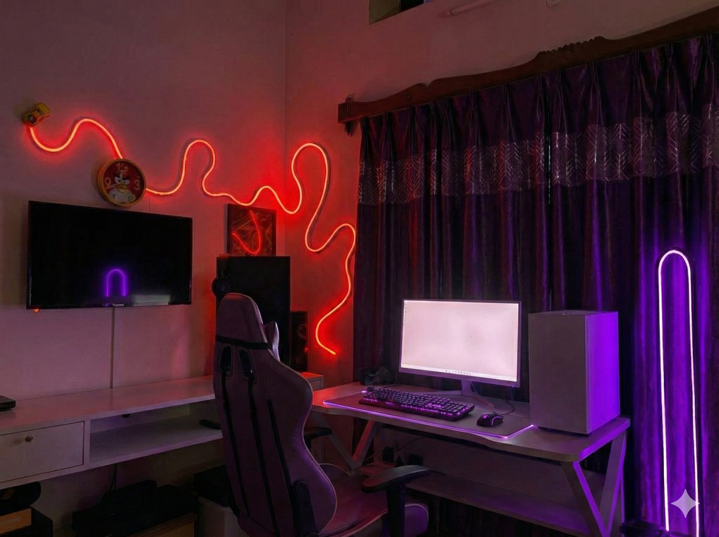 • ARGB Neon Strip Light: Flexible, "dot-free" neon tubing featuring Addressable RGB for flowing rainbow effects and smooth color transitions that standard strips can’t match.
