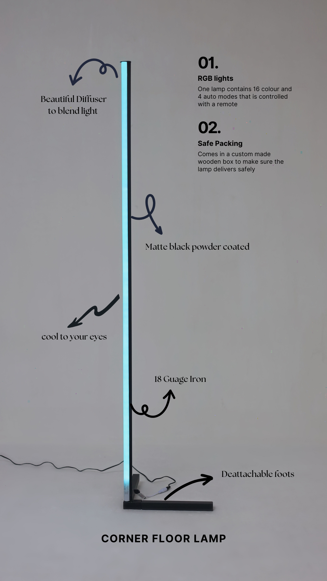 Brighten up your corners with the DASHAB RGB Corner Lamp, a stunning blend of modern design and cutting-edge LED technology. Crafted with a distinctive corner-friendly shape and an integrated RGB LED strip, this lamp takes your decor to a whole new level.